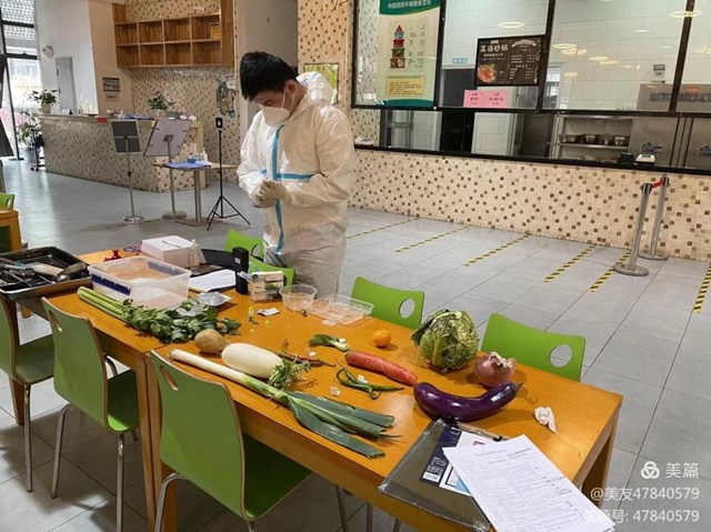 面对这项特殊任务,学校党政领导义无反顾,主动担当,精心部署,周密安排,一边从严从实抓好封校管控工作,严把生活保障车辆进出校园消杀工作,一边部署安排全面做好配餐送餐安全操作。副校长李宗领亲自督查,检查员工体温检测、核酸测试结果,食品及食品原料采供来源及票证,食材加工操作间设备消毒、食品加工过程控制、食品留样、餐饮具清洗消毒、场所卫生等消杀落实工作;沣西新城市场监管局领导及第三方食品监测公司工作人员对配菜送菜实行过程跟踪检查检测,监管人员每天对检测批次及结果进行签字、留存,确保隔离人员吃上放心、满意饭菜。