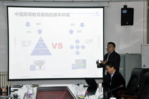 胡建波董事长以“教育机构战略变革与组织转型”为题,首先介绍了“应用科技大学转型的背景”,他通过列举欧洲应用技术大学发展历程、现有规模,中国高等教育面临的基本环境、数据分析、发展历程和标志性事件,引出教育体系从“h”转型“H”的建议;随后,他详细阐述“教育机构应对环境变化的战略思考框架”,并提出始终关注外部环境和变化、洞察优势之源、战略重点排序、标杆的选择、应用型人才培养目标五点建议;并以欧亚学院为转型具体案例,分享了欧亚承担教育部“民办高校内部管理体制改革试点项目”的实施成果,以及学校的战略转型和具体落实、财务管理转型以及信息化与业务的发展历程等,为大家做了精彩的报告。讲座中,胡建波还对陕服的发展给与了高度评价,提出了中肯的建议。